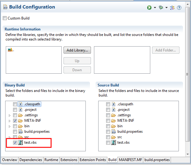 2. In den build.properties des Plugins muss das script zum export ausgewählt sein, da es sonst beim Pluginexport nicht in das Plugin eingefügt wird.