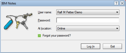 Dieser Dialog ist die erste Visitenkarte die jeder Anwender bei der Verwendung von Notes bekommt. Leider vermittelt dieser Dialog und vor allem auch der Schlüsselring ein für das Jahr 2012 unerträgliches Windows 98 Feeling.